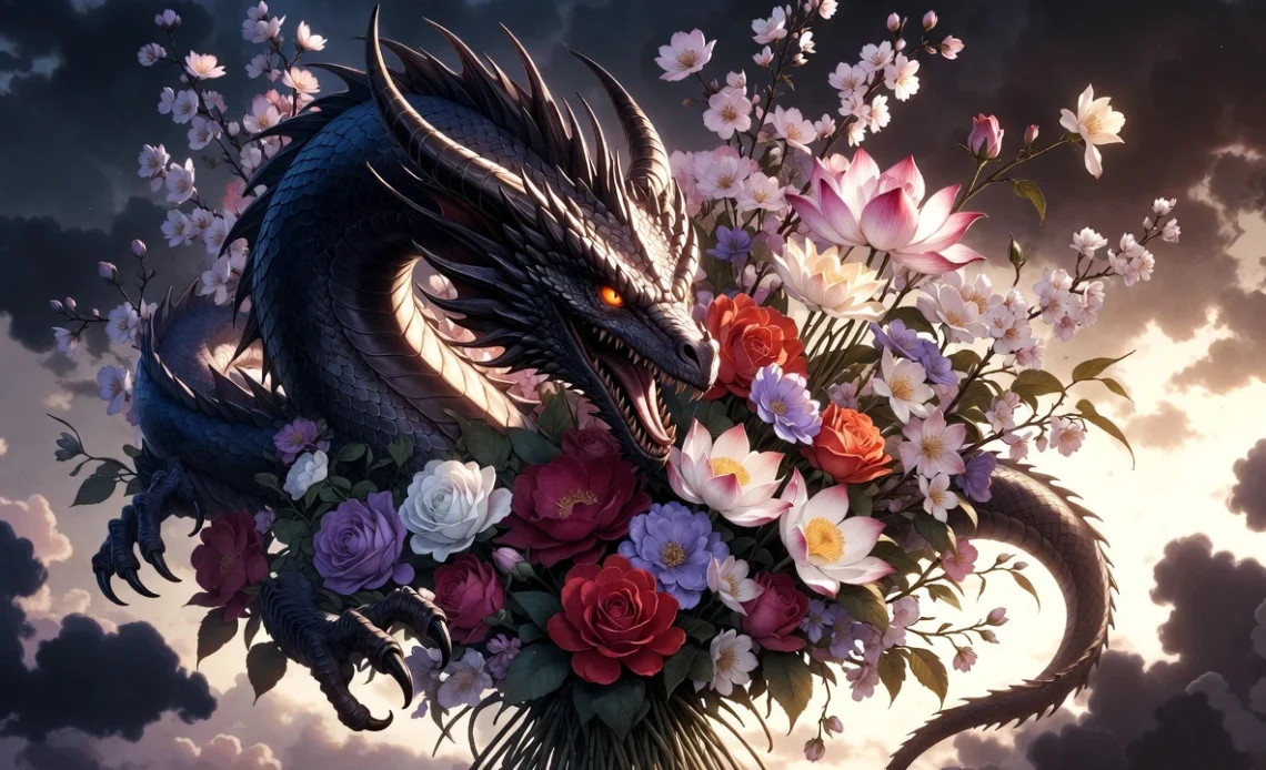 Dragon With Orchids for Elegance and Mystery